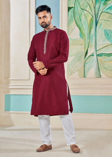 Luxury Cotton With Embroidery Work Kurta Pajama