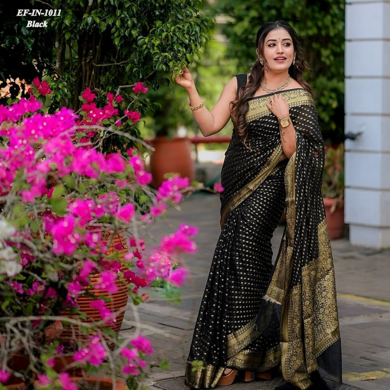 Product Code: EF-IN-1008Saree: Banarasi Lichi SilkBlouse: Jacquard border blouse Saree work: jacquard work Saree length: 5.50 MtrsBlouse...
