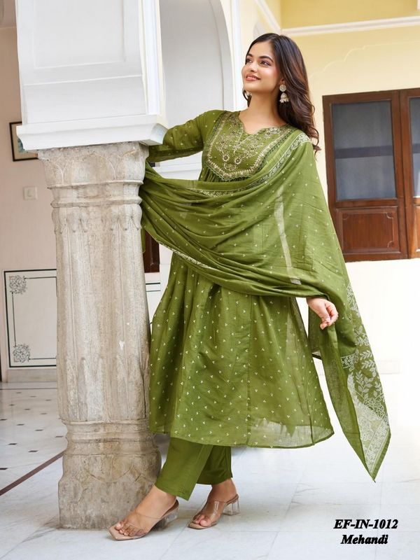 Beautiful Cotton Embroidery With Printed Kurti Pant With Dupatta