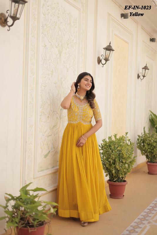 Beautiful Faux Blooming Georgette With Embroidery With Sequence Work Gown