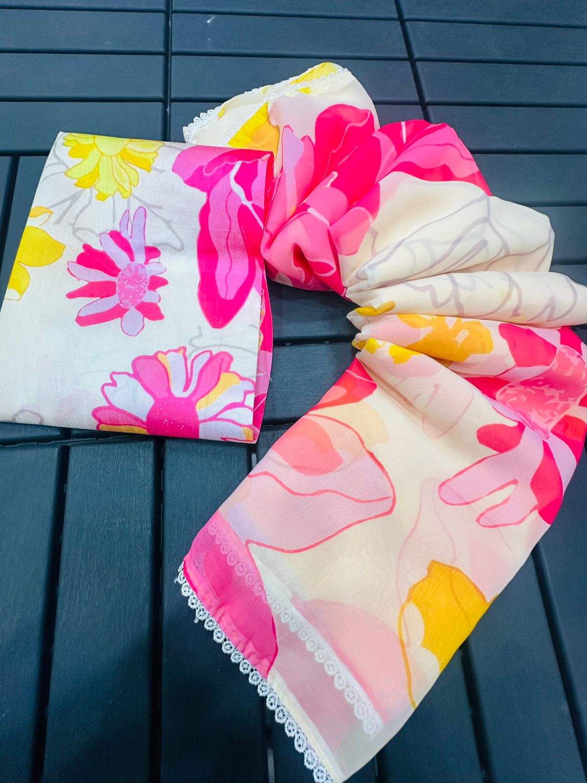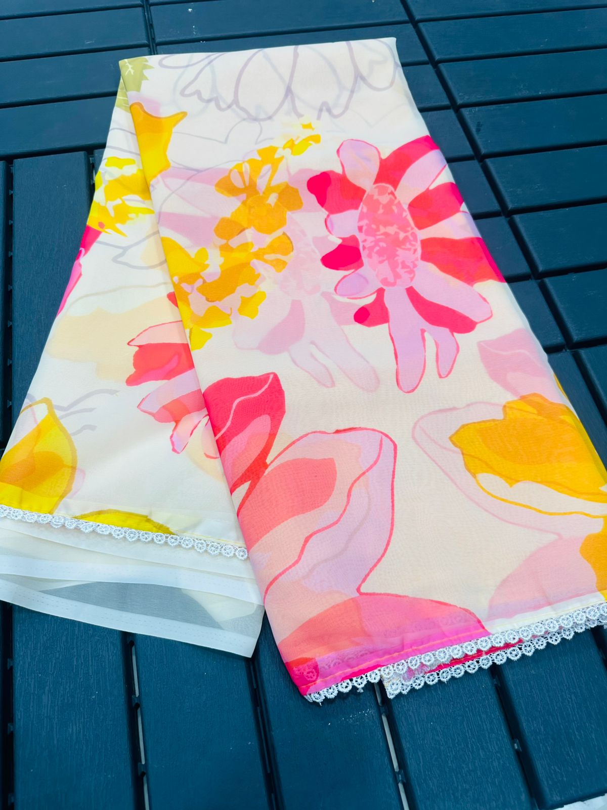 Exclusive Soft Georgette With Fancy Lace Sarees