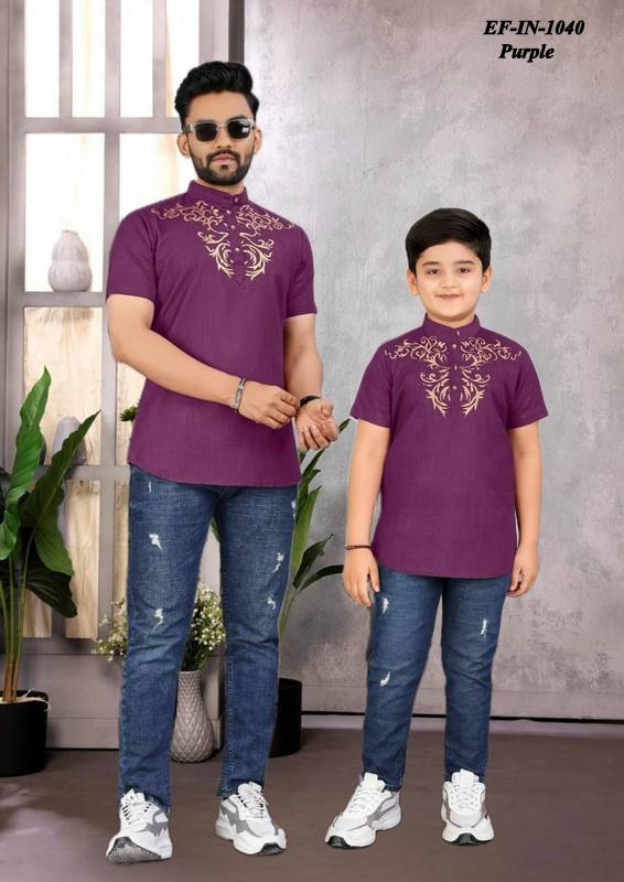 Trending Magic Cotton Foil Printed Shirt Combo Set For Father Son